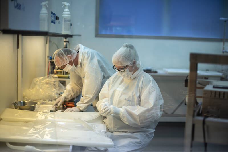 The assembly of single-use systems takes place in the assembly facility of sister company UltraPure International. Hitma's single-use assemblies are manufactured there under cleanroom conditions (ISO Class 7).